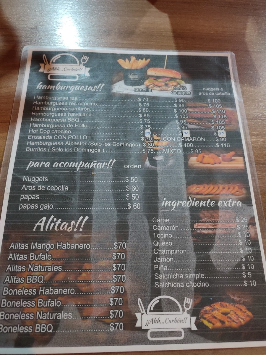 Welcome to !!!!Ahh Carbón!!!!, a vibrant dining destination located in the heart of San Julián, Mexico. This cozy venue boasts a diverse menu that tantalizes your taste buds with a variety of offerings, from succulent hamburgers to flavorful hot dogs, crispy wings, golden nuggets, and crunchy onion rings.